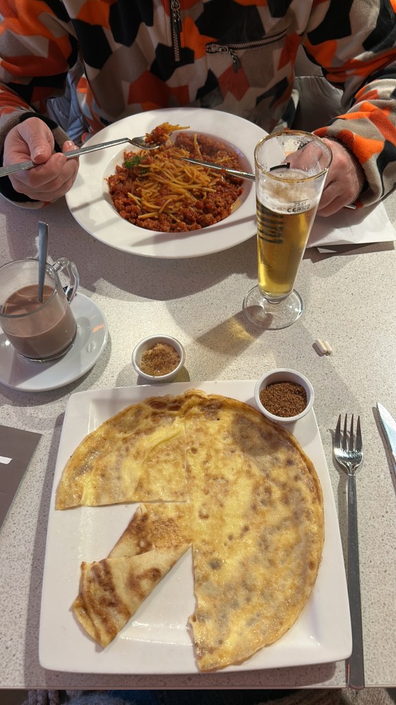 En natuurlijk wordt er ook veel gerust en uitslapen . De perfecte vakantie voor ons . Ook hoort er elke keer een uitstapje bij naar een brasserie waar ze zeer lekker glutenvrije pannenkoeken hebben . Voor mij maar een klein stukje maar wat was dit weer lekker . (https://tearoomgeorges.be/)