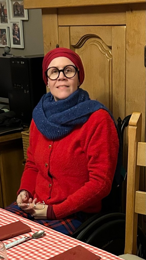 Ik ben een zomer persoon maar wat heb ik liever de koude dat dit weer . Sneeuw is mooi om naar te kijken maar zo onhandig voor mij .Gelukkig is benny thuis van het werk want kan nu niet alleen naar buiten . Met de rolstoel is het niet mogelijk en met krukken moet je zeer goed oppassen . Ik heb al geen evenwicht en nu is dat nog erger . Op zo een momenten besef ik hoe beperkend mijn lichaam is .Ook merk ik dat ik meer spasmes en pijn heb door de koude .