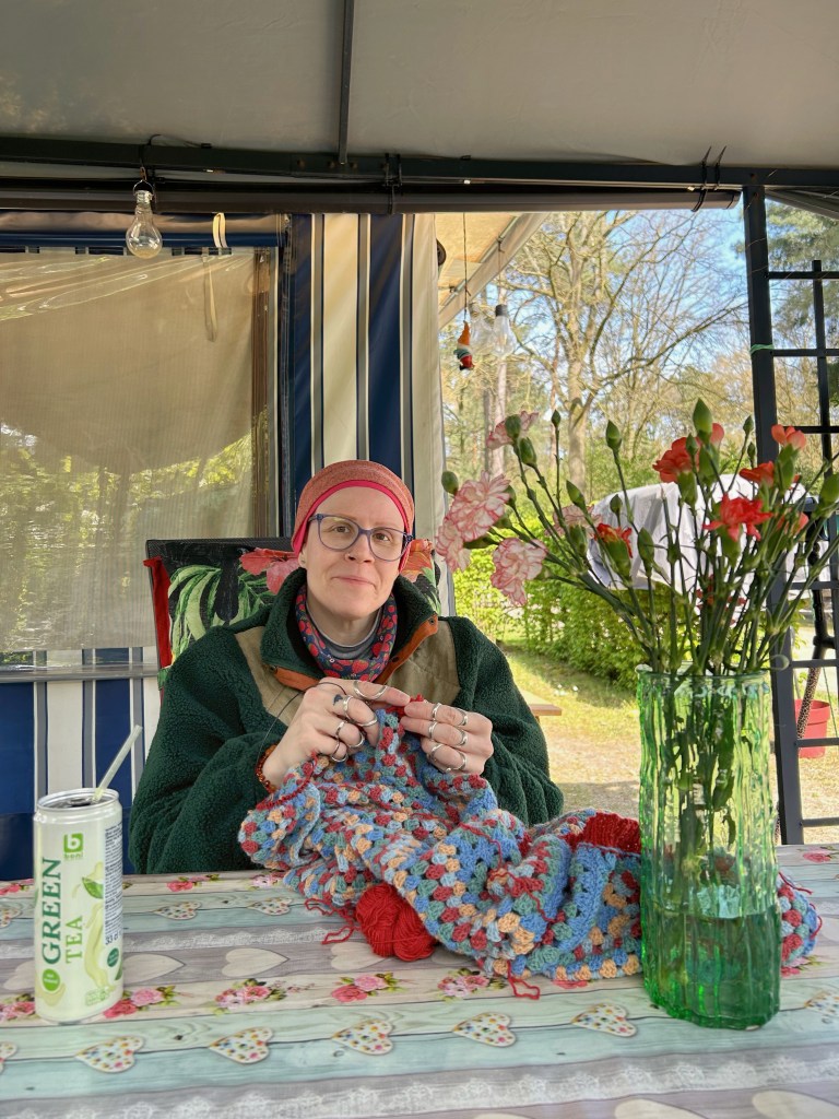 Genieten van een brei ,haakwerkje en een podcast . En een theetje of koffietje hoort er natuurlijk bij .