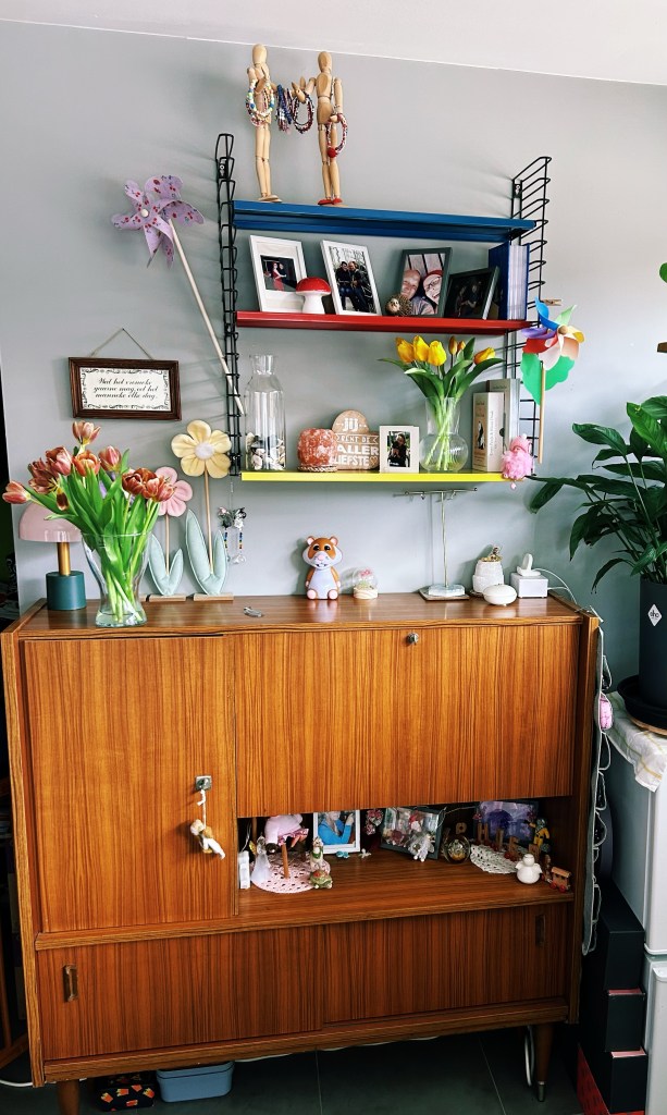 Hebben ook wat veranderd in ons huisje zoals een andere kast en deze in laden en inrichten is voor mij ook iets dat veel energie gekost . heeft . Ben wel zeer blij want zoals de meeste wel weten heb ik een apart interieur en hou ik van vintage meubelen . En toen ik deze kast zag was ik op slag verliefd …