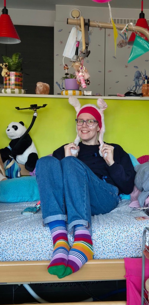 Ik probeer het ook allemaal wat los te laten . Want merk dat ik het toch moeilijk heb de laatste weken . Vooral dat het niet stopt . Elke keer komt er iets nieuws op medisch gebied . Dit is voor de rest van mijn leven …Ik ben blij dat de voedingssonde uit mijn neus is maar het gedacht dat er weeral iets in mijn lichaam zit . Het zoveelste al . Heb al een neurostimulator ,poortcatheter ,..En nu dus de peg-sonde .